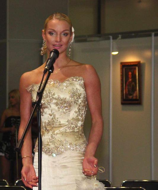 Анастасия Волочкова с приветственным словом на открытии выставки